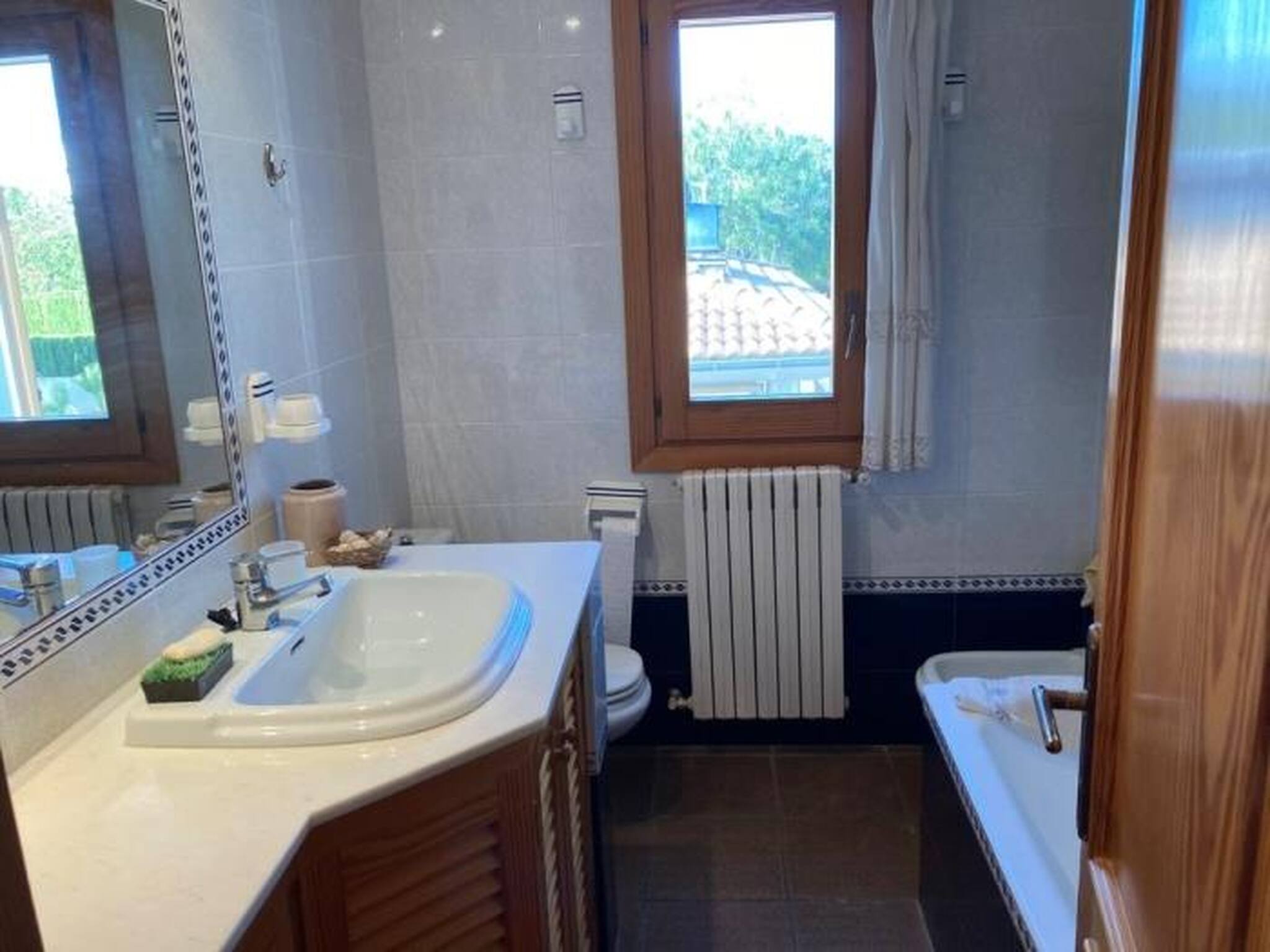 En la planta baja: 1 habitación con cama de matrimonio y 1 habitación con 2 camas individuales; 1 baño separado.