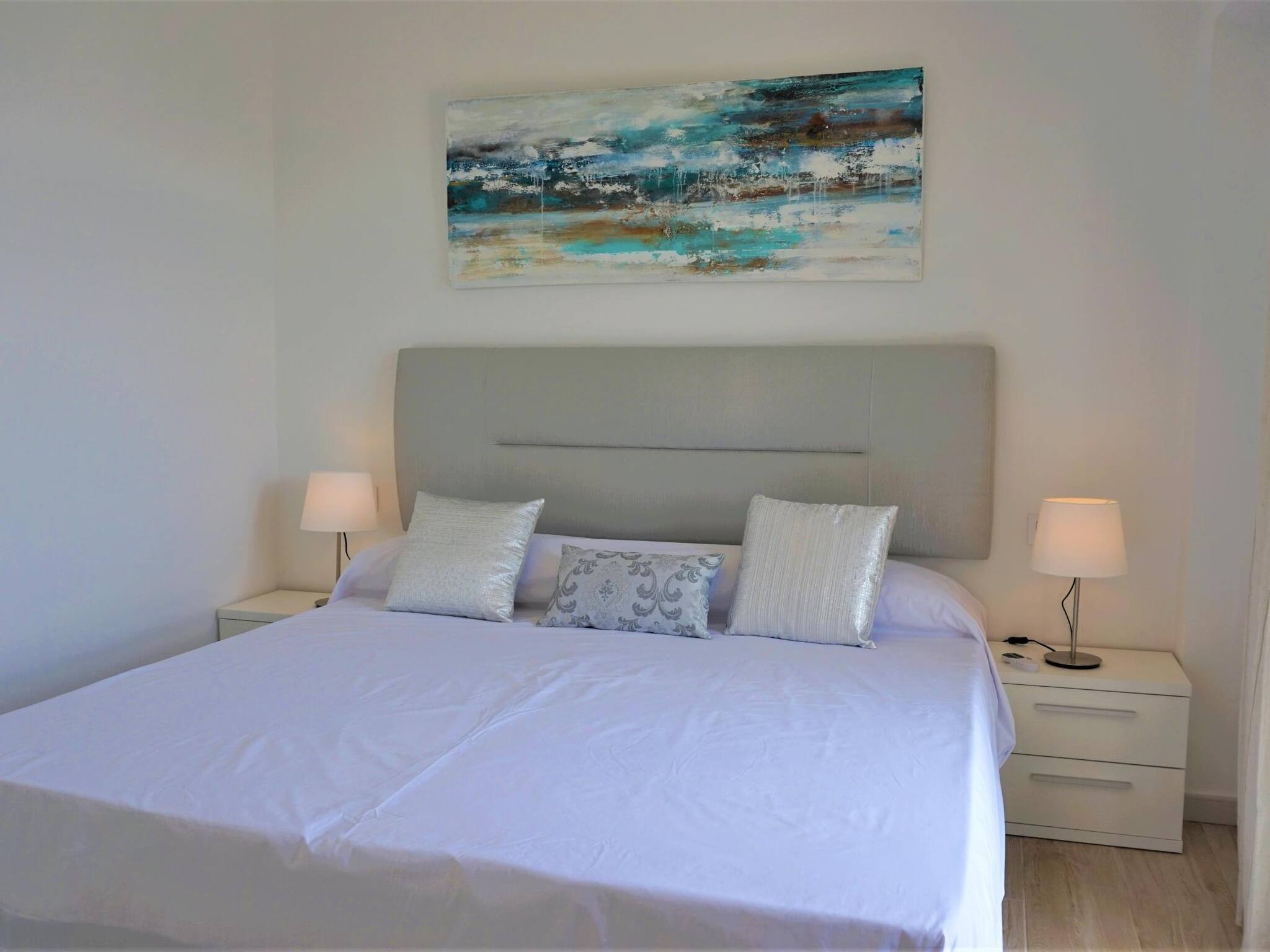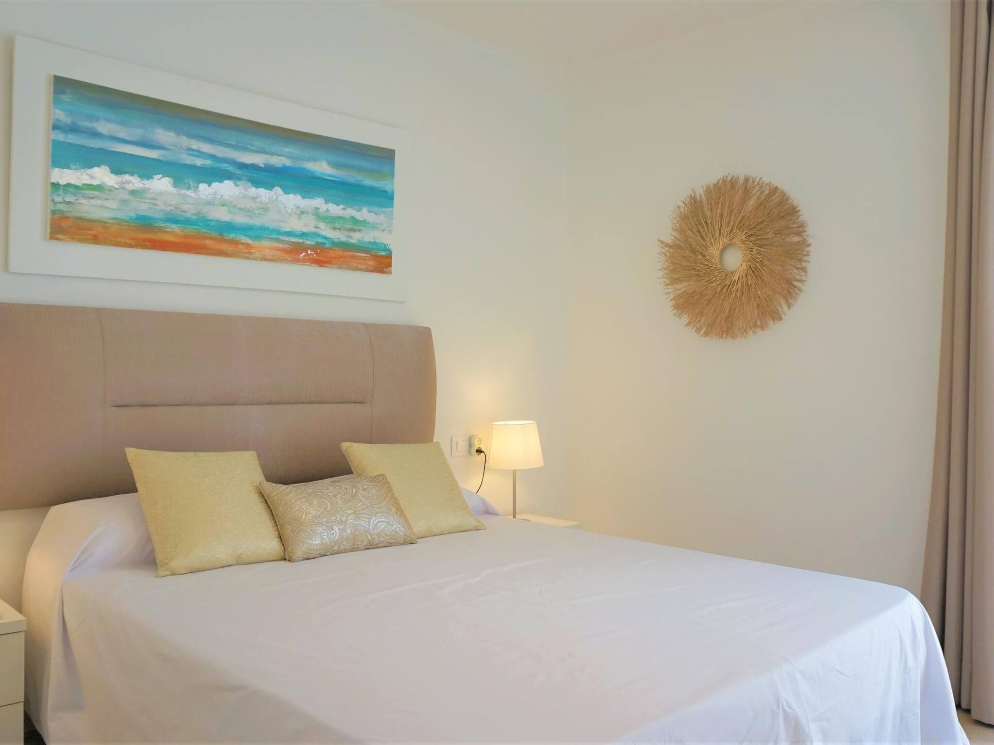 El apartamento está ubicado en el segundo piso. Es un apartamento de dos dormitorios (un dormitorio tiene una cama de matrimonio y el otro tiene dos camas individuales). Incluye: dos baños completos, salón-comedor, cocina totalmente equipada y terraza privada con muebles de exterior. Cuna y trona a disposición de nuestros huéspedes. Disponemos además de 4 hamacas y 2 sombrillas para uso privado de nuestros huéspedes, situados en la zona de la piscina.