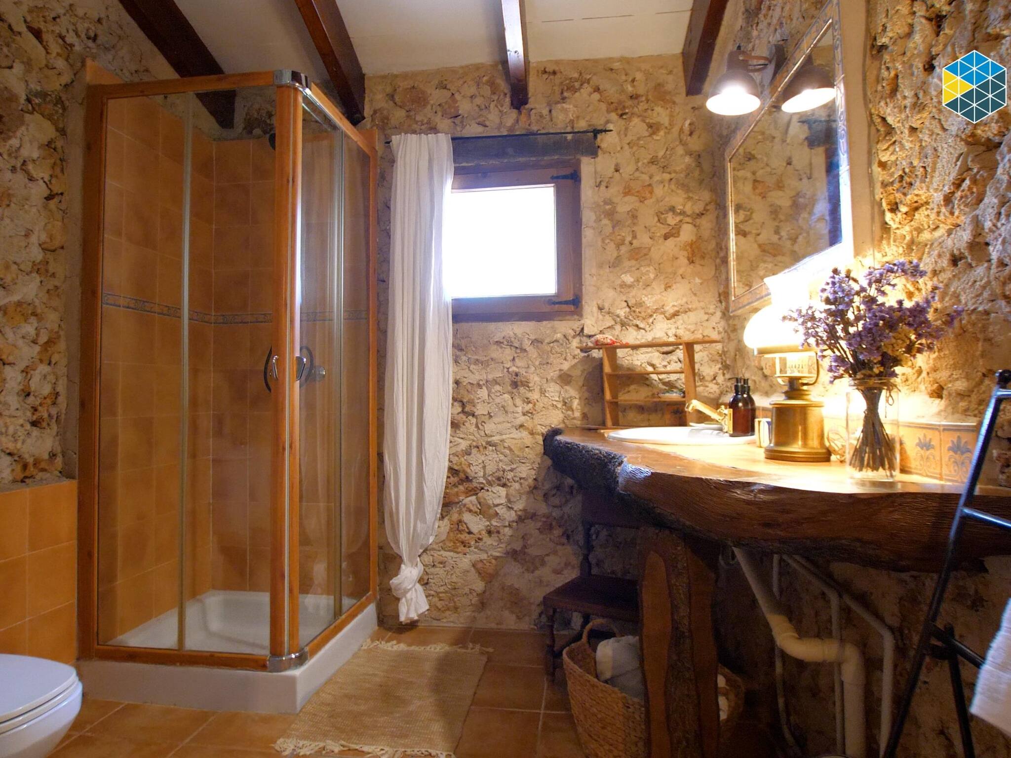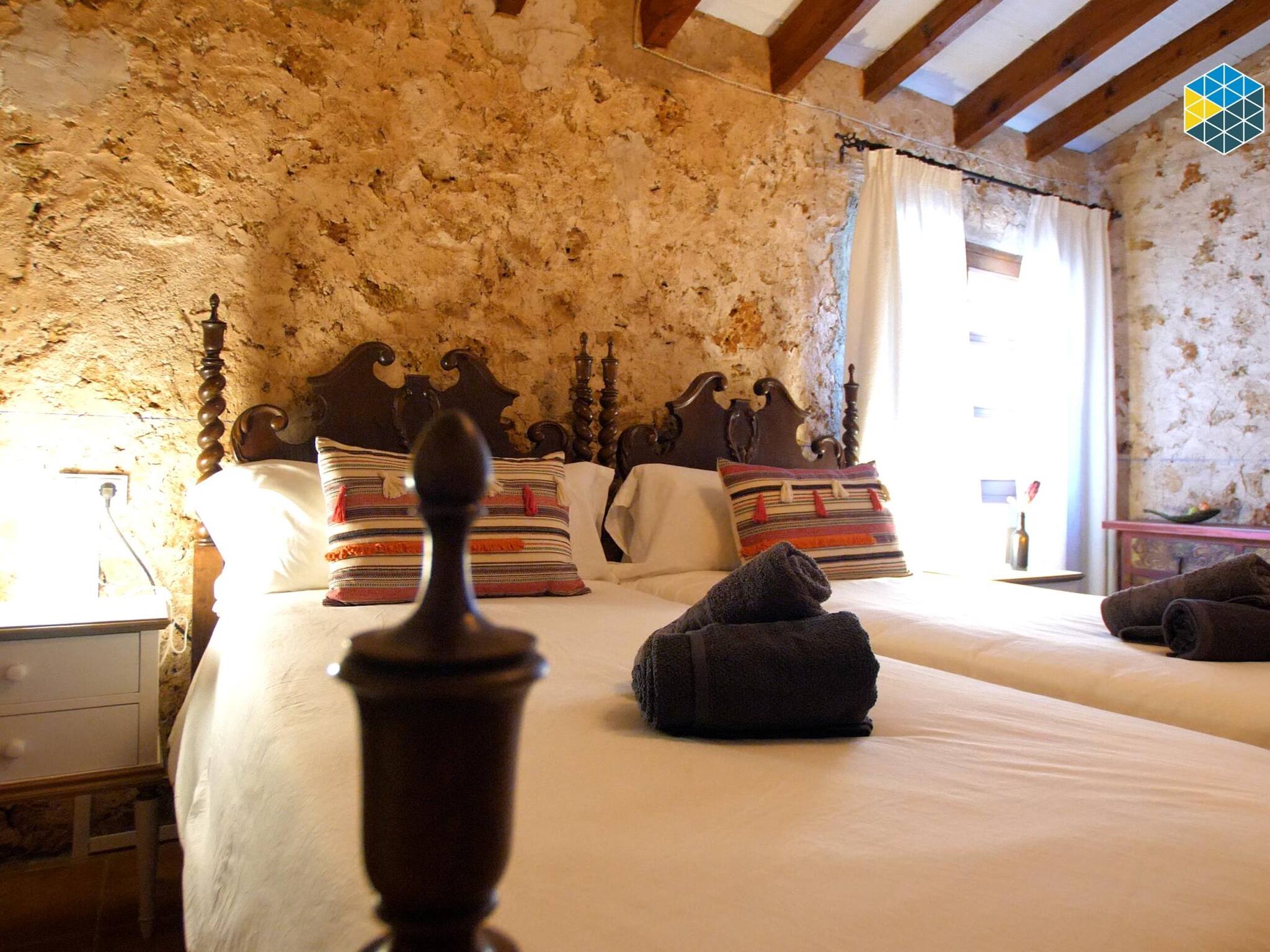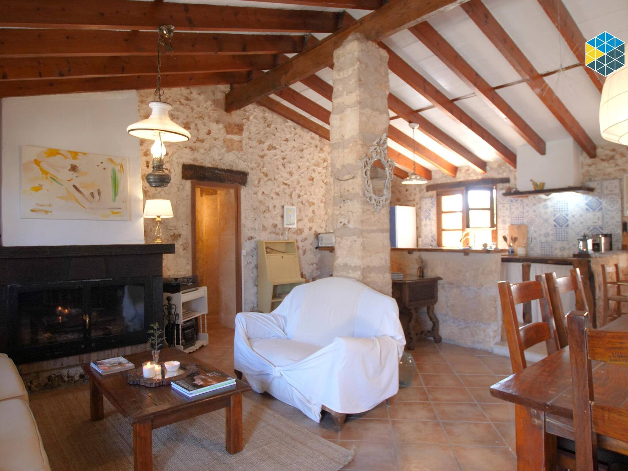 La casa tiene el estilo rústico mallorquín, a la vez que cuenta con las comodidades de una casa moderna, bien decorada y cuidada. Tiene 2 habitaciones dobles, una de ellas con 2 camas individuales y la otra con 1 cama de matrimonio, es ideal para familias o parejas. El salón/comedor es amplio y cómodo. La cocina cuenta con todos los electrodomésticos necesarios. Unidades de aire acondicionado (frío y calor) en el salón y en las dos habitaciones, para asegurar el confort de los huéspedes.