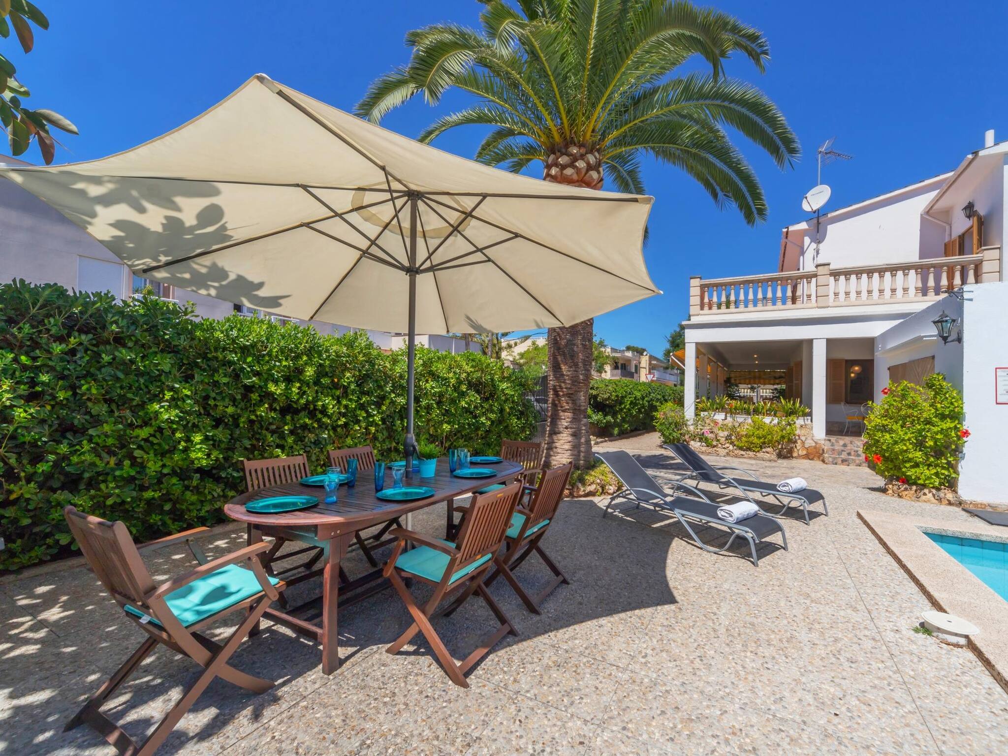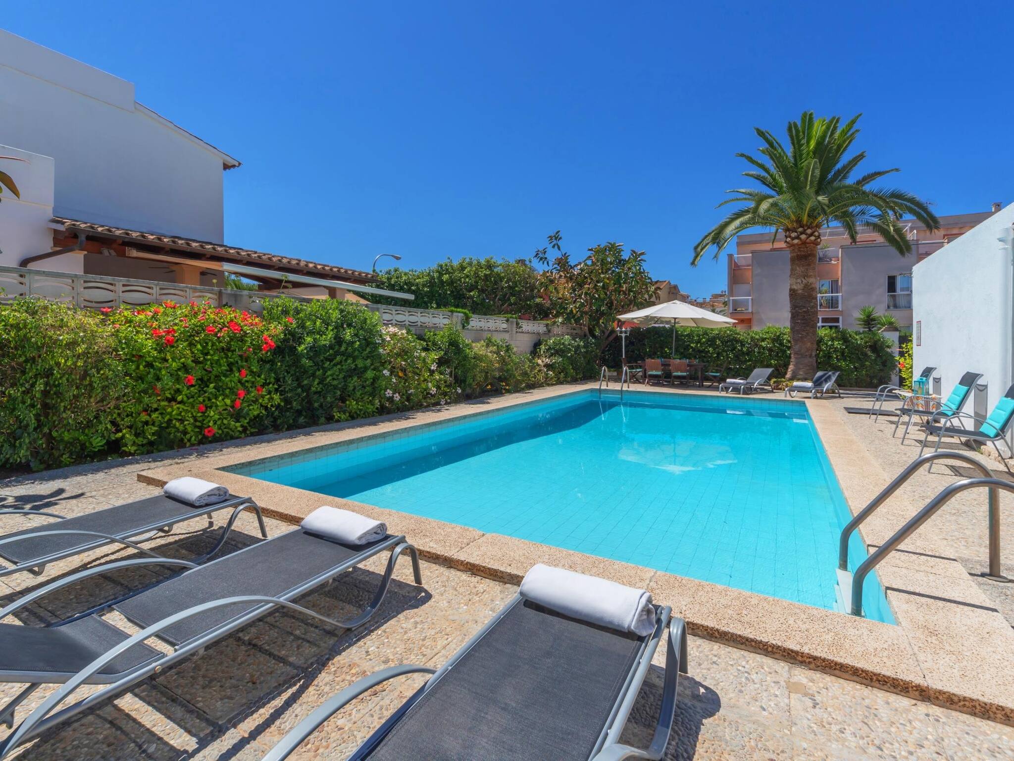 Increíble casa de vacaciones con piscina ubicada en Can Pastilla, Palma. Dispone de 4 dormitorios, 2 baños completos, salón, amplias terrazas, piscina y garaje para 2 coches. Se encuentra a tan solo 10 minutos andando de la playa y a 5 minutos en coche del aeropuerto. ¡Ideal para pasar vacaciones en familia! Aire acondicionado en todos los dormitorios y salón, Internet alta velocidad (fibra óptica) y barbacoa. cuna y trona. Hay detectores de humo para su seguridad.