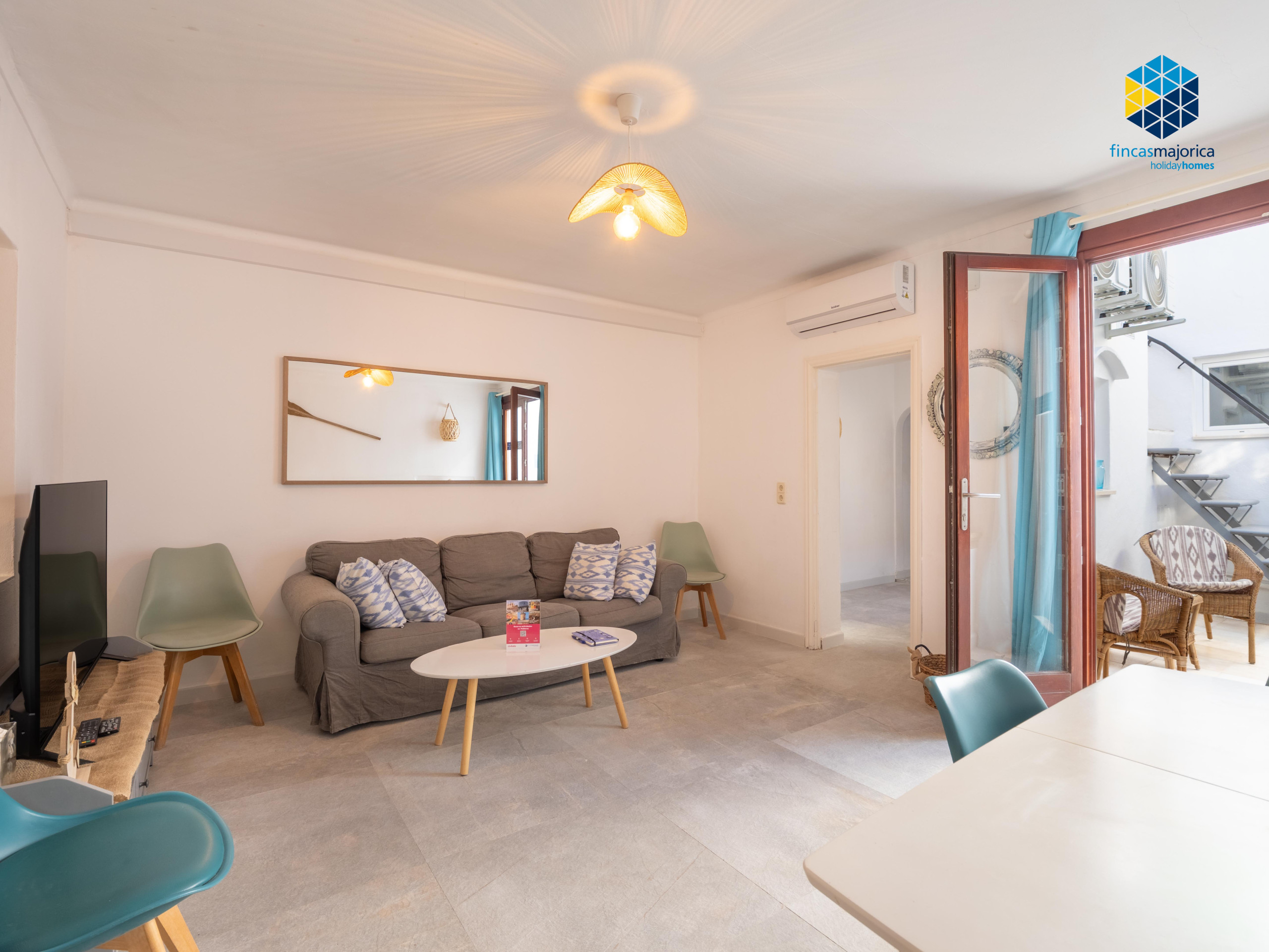En la planta baja encontrará una cocina totalmente equipada, un luminoso salón-comedor, dos dormitorios y un baño con ducha. Desde esta planta también se accede a un pequeño patio con escaleras que conducen al piso superior.