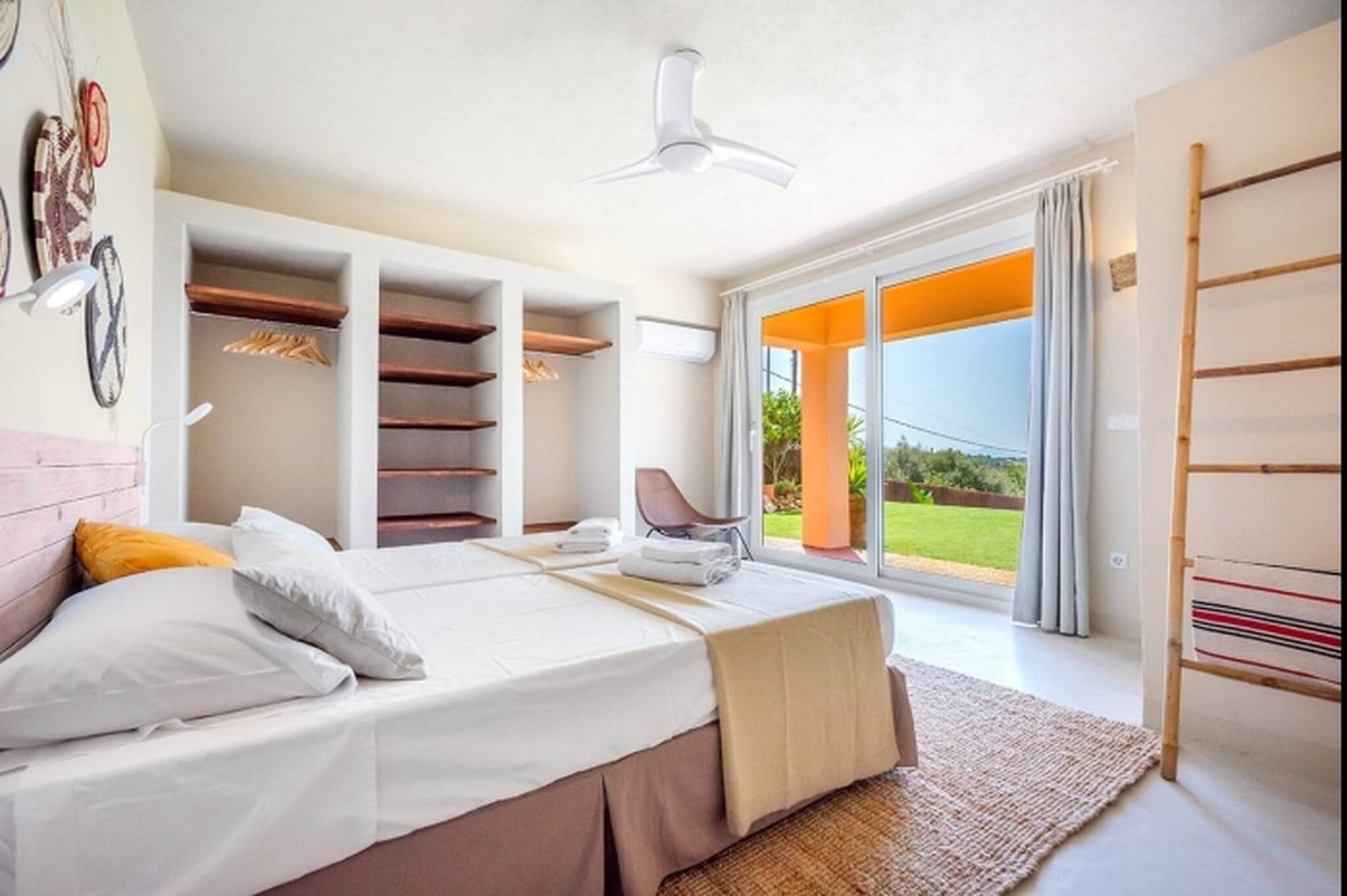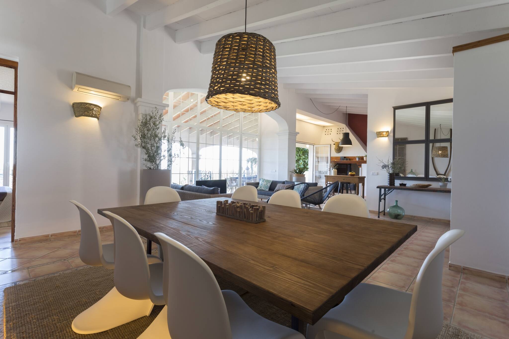 La planta baja cuenta con dos dormitorios grandes, uno de ellos con baño en suite, el otro dormitorio cuenta con vestidor, 2 camas y un sofá cama (para hasta 2 personas extra) y baño. Esta planta tiene su propio acceso independiente de la planta superior. Hay chimenea, calefacción central y aire acondicionado en toda la propiedad, por lo que el confort está garantizado en cualquier época del año. Para nuestros huéspedes más jóvenes, tenemos a su disposición 2 cunas y 2 tronas.