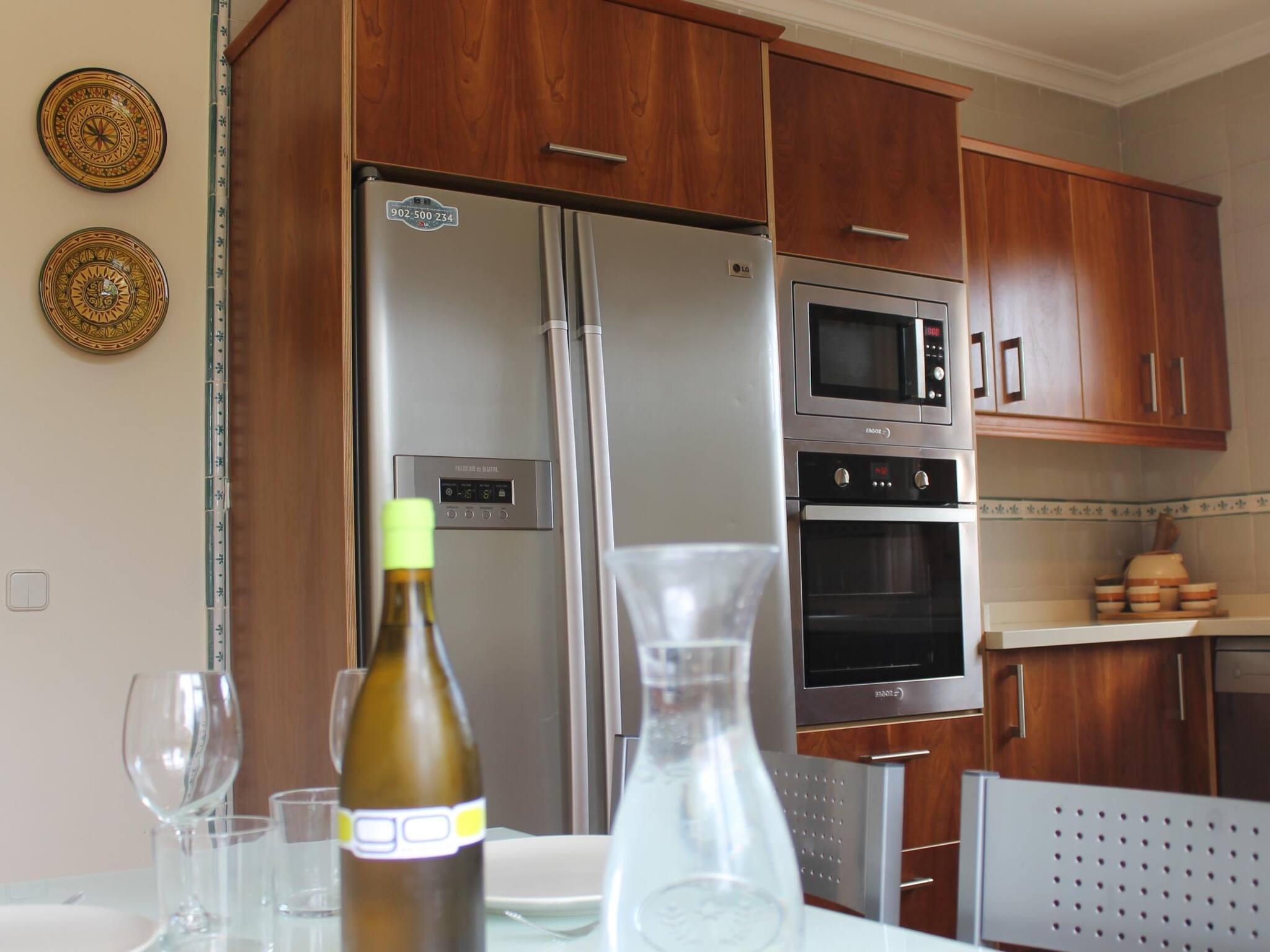 La cocina independiente, de vitrocerámica, está equipada con nevera, microondas, horno, congelador, vajilla/cubertería, utensilios/cocina, cafetera, tostadora y hervidor de agua.
