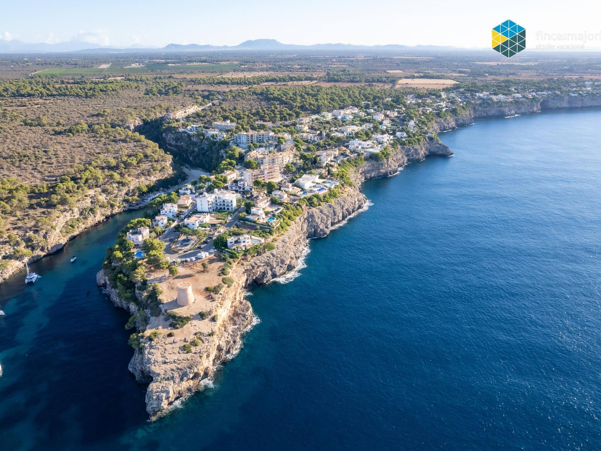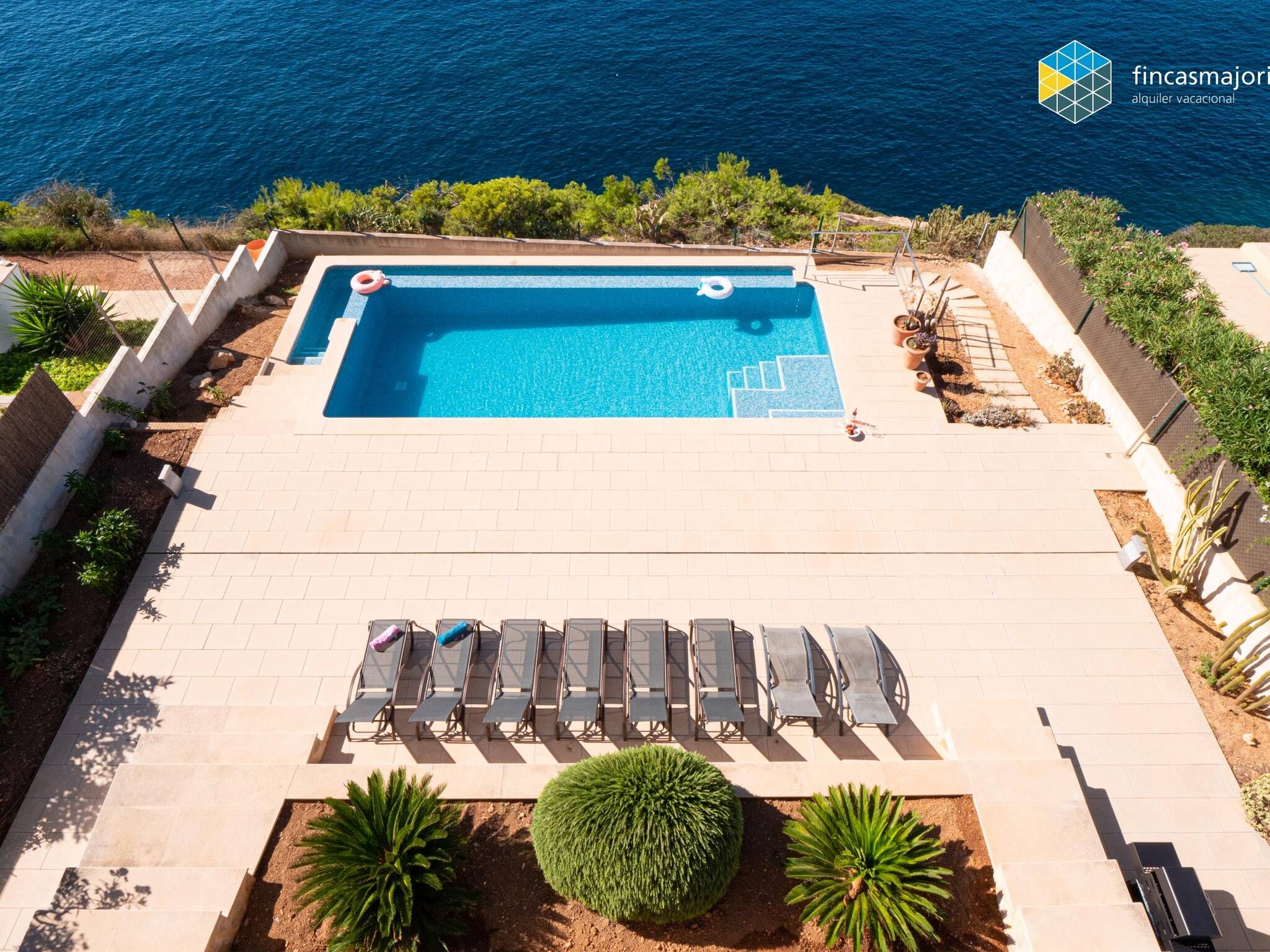 La playa de Cala Pi, situada a escasos 500 metros de la villa, está considerada por muchos como la playa perfecta, protegida entre dos acantilados, con arena dorada y aguas azul turquesa. El acceso a la playa es cómodo y se realiza por una escalinata accesible a todas las edades.