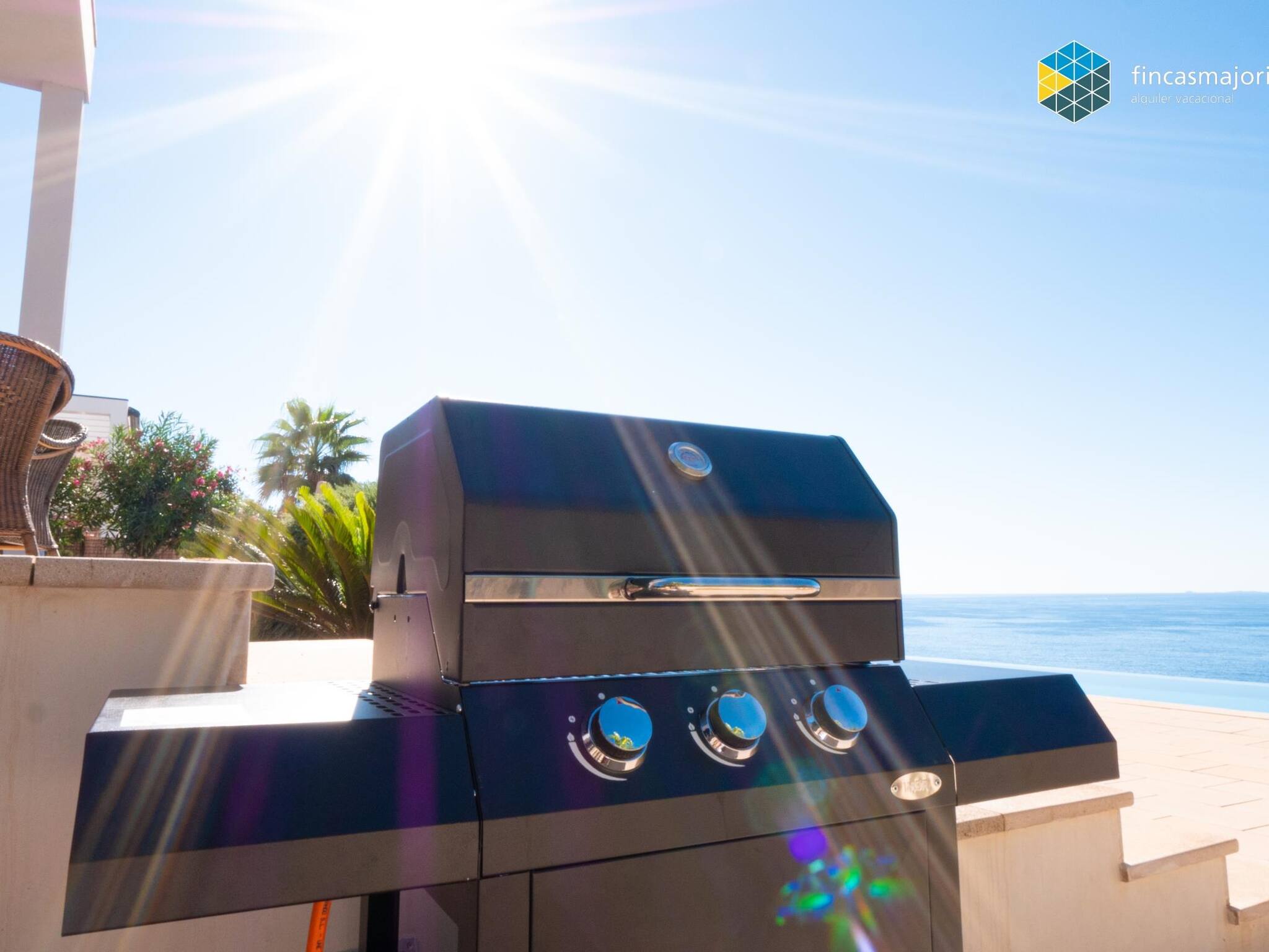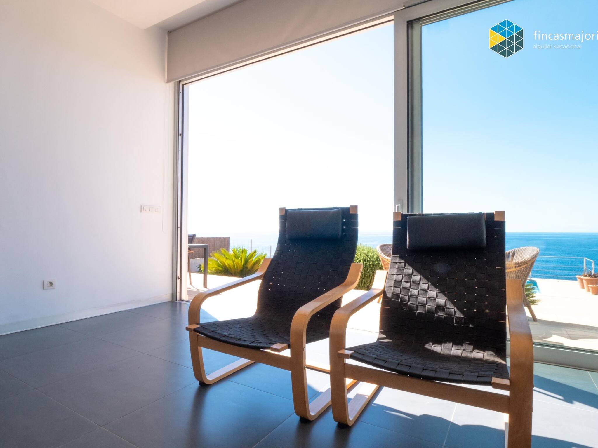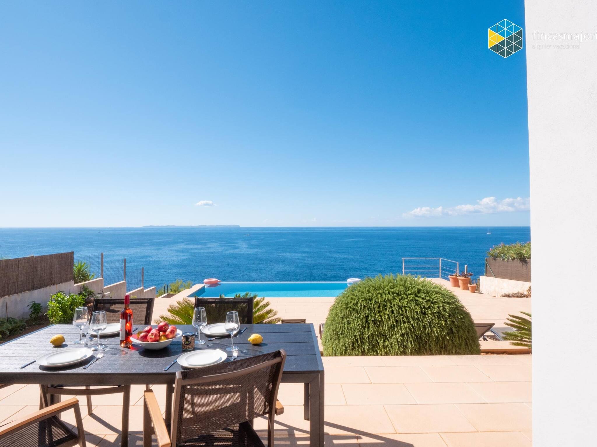 Esta fantástica villa dispone de 4 dormitorios dobles, todos ellos con baño en suite. Todos los dormitorios tienen vistas al mar, así como cortinas blackout que garantizan la más absoluta privacidad. El dormitorio principal tiene su propia sala de estar privada y cuenta con grandes ventanales que lo llenan de luz y permiten disfrutar de las relajantes vistas. Disponemos de cuna, trona y hamaca de bebé para nuestros huéspedes más jóvenes. La cocina, es amplia y luminosa y comunica con la zona de coladuría y despensa.En la terraza cubierta encontramos el comedor de verano. Junto a la piscina hay zona de hamacas y sillones de exterior.