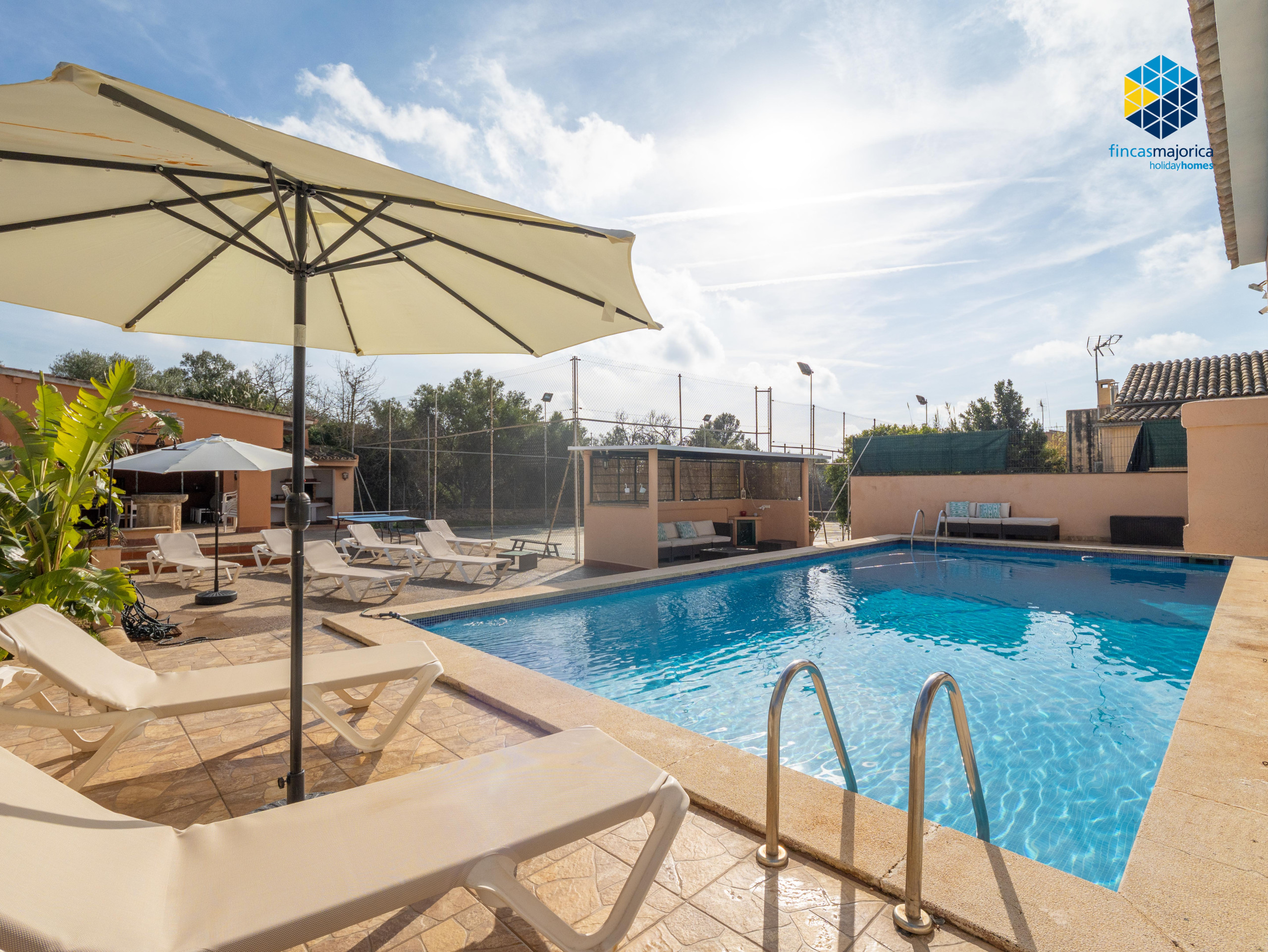 Espaciosa villa con fantástica piscina y pista de tenis privada en Sa Cabaneta, a solo 15 minutos del centro de Palma. Este oasis en medio del campo es ideal para todos aquellos amantes del deporte, del espacio y de la tranquilidad.
