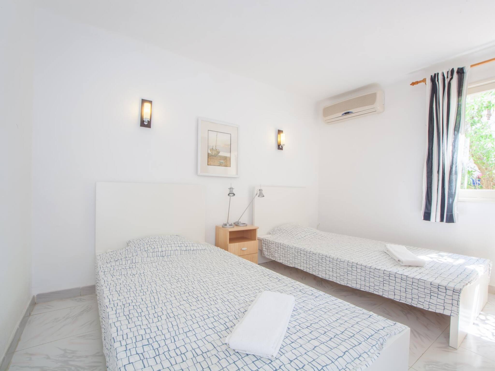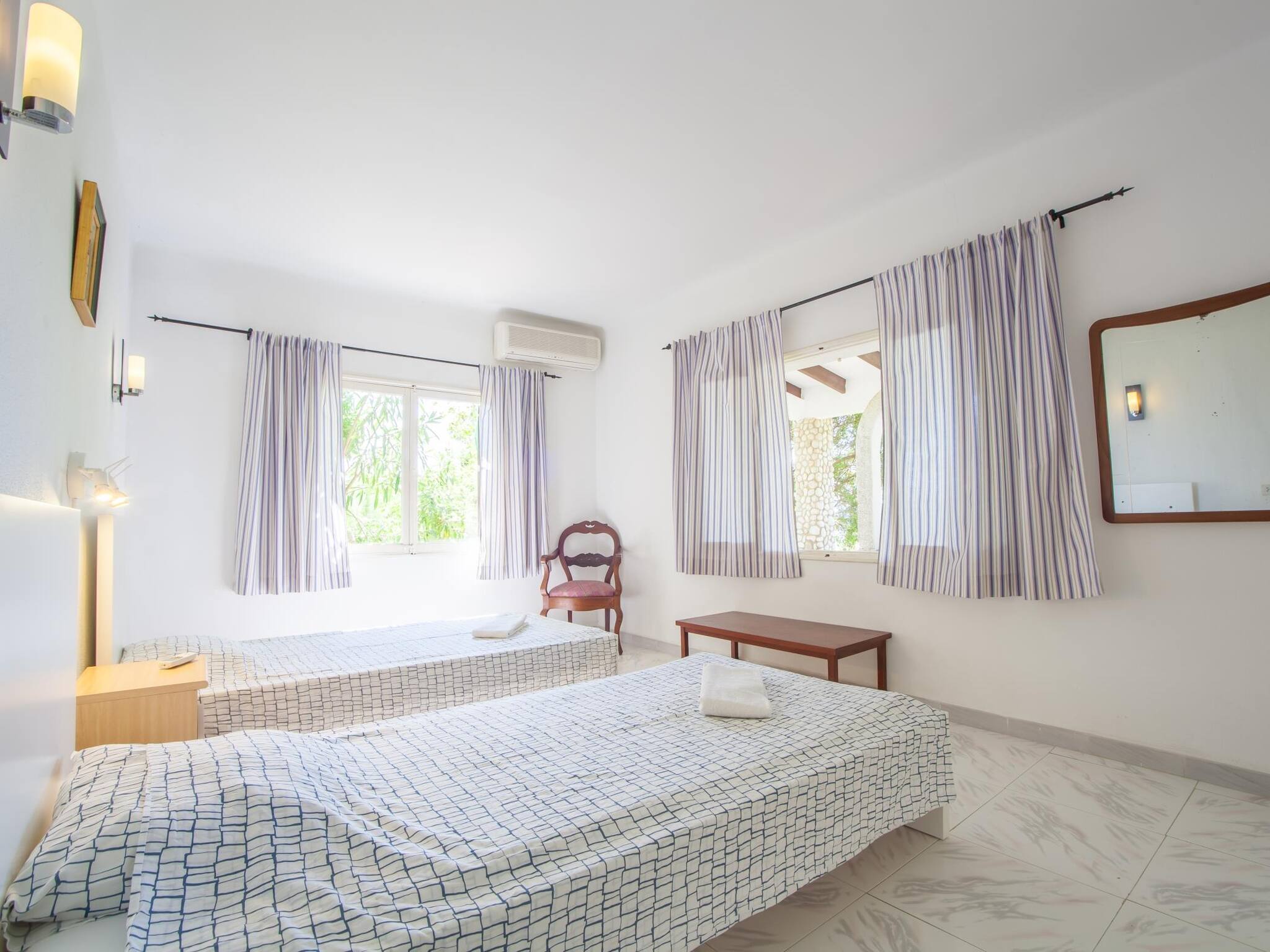 Finca La Siesta ist eine Villa mit Pool, die sich 150 Meter vom Strand in Betlem, Mallorca, entfernt befindet. Sie liegt in einer sehr ruhigen Wohngegend. Das Haus bietet viel Privatsphäre und ist perfekt für einen entspannenden Urlaub, bei dem man den Pool und die schönen Buchten der Gegend genießen kann. Es ist ideal für Familien und verfügt über alle Annehmlichkeiten, Klimaanlage in den Zimmern, Pool, Grill und Billardtisch. Wir stellen Kinderbett und Hochstuhl zur Verfügung. Unterkunft für bis zu 8 Erwachsene: 4 geräumige Doppelzimmer und 2 vollständige Badezimmer; es ist gut gepflegt und sonnig. Ein Tresor steht den Gästen zur Verfügung. Die Buchten von Betlem befinden sich weniger als 2 Gehminuten entfernt. Es sind kleine Buchten mit weißem Sand, die normalerweise nicht sehr überfüllt sind. In der Gegend gibt es gute Restaurants.