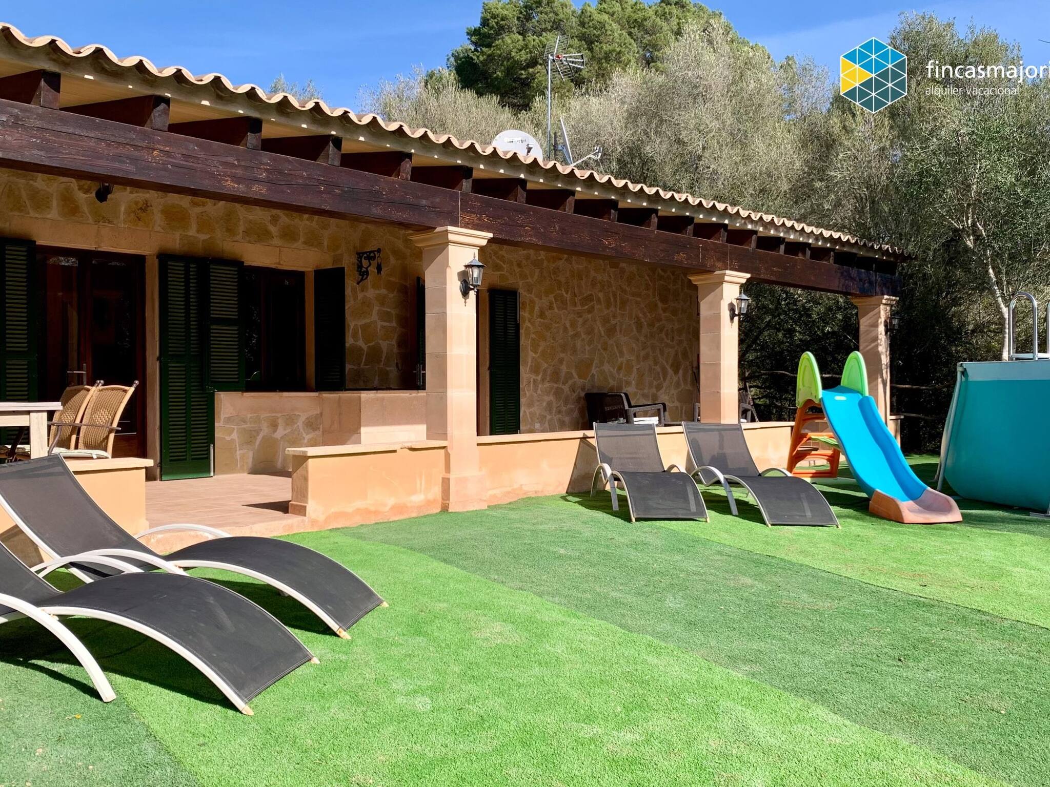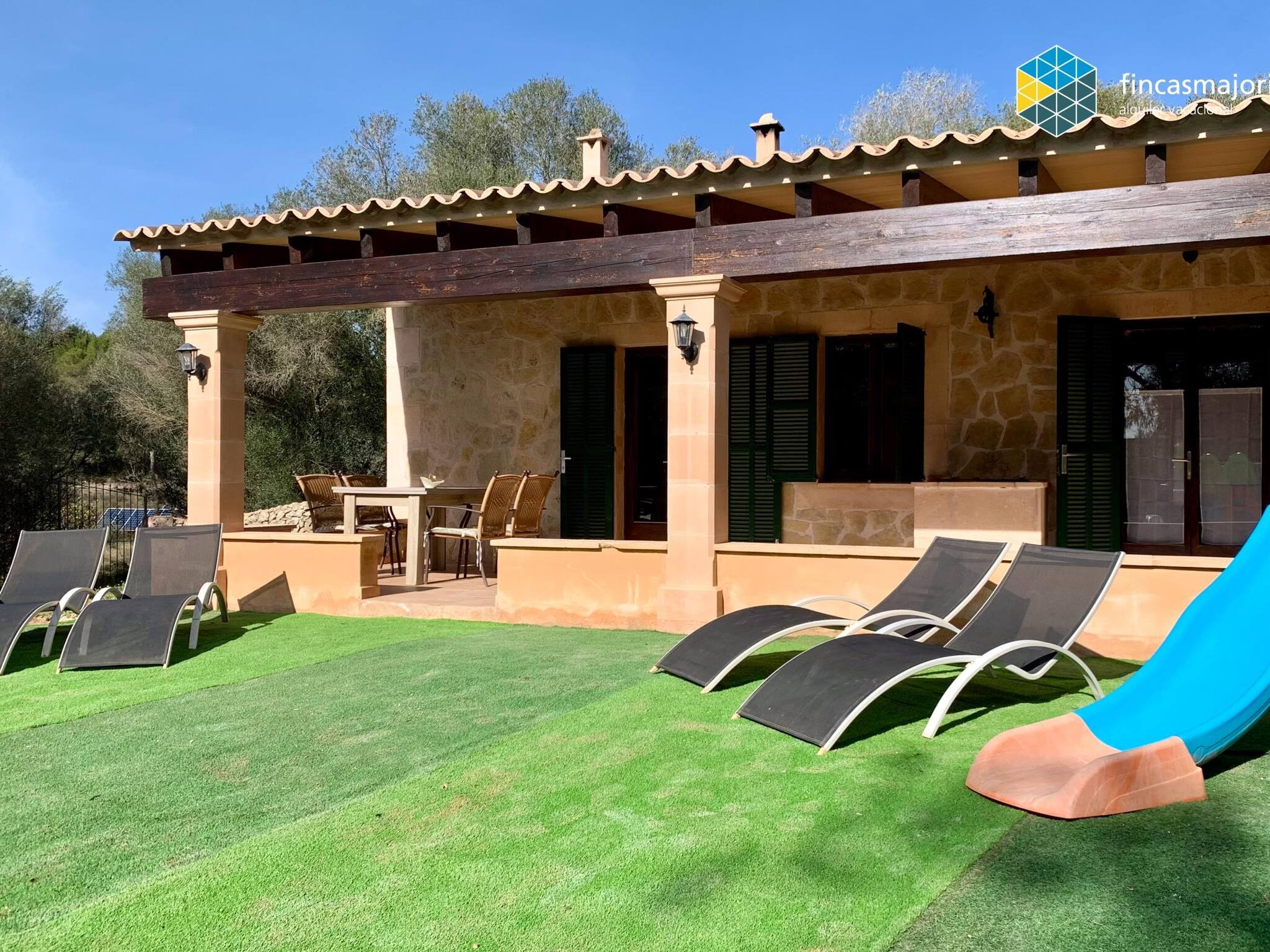 Cas Rellotger (Das Haus des Uhrmachers) ist ein wunderschönes, neu renoviertes Landhaus am Stadtrand von Llucmajor. Das Haus ist ideal für Familien, da es über einen Kinderspielplatz im Freien und einen Pool verfügt. Es ist mit allem Komfort ausgestattet und verfügt über eine Klimaanlage (warm/kalt) in allen Räumen. Es gibt 2 Doppelschlafzimmer und 2 Badezimmer, beide en Suite. Dieses Haus eignet sich besonders für Familien mit kleinen Kindern. Ein Kinderbett und ein Hochstuhl stehen kostenlos zur Verfügung. Es handelt sich um ein komfortables Haus mit großzügigem Außenbereich. Draußen gibt es Einrichtungen für Kinder wie ein Spielhaus und eine Rutsche. Das gesamte Grundstück ist eingezäunt.