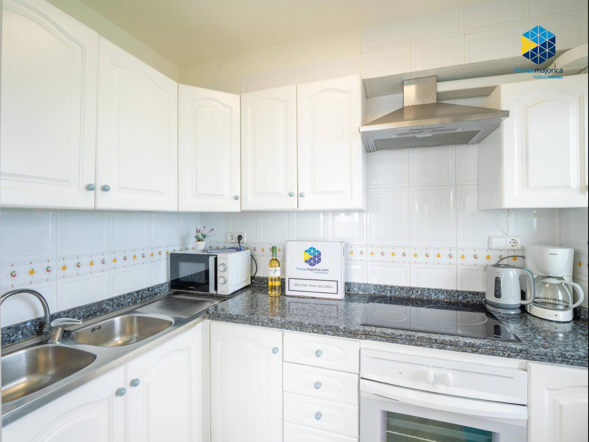 Es gibt Klimaanlage (Kalt und Warm) im Wohnzimmer und die Küche ist komplett ausgestattet.