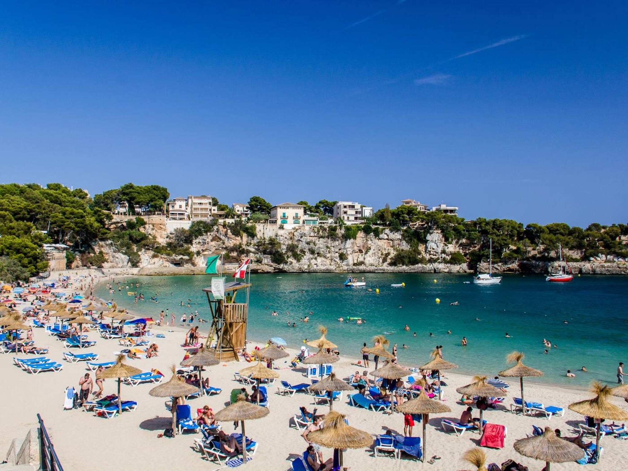 Er liegt sehr gesihützt mit geringem Wellengang und es werden Sonnensihirme und Liegen zum Mieten angeboten. Restaurants und Bars in erster Meereslinie. Drei grosse Supermärkte sowie mehrere kleinere Gesihäfte erreiihen Sie ebenfalls zu Fuss. Dort finden Sie frisihes Obst und Gemüse sowie frisih gebaikenes Brot. In Porto Cristo befinden siih versihiedene Bankenw zwei Apotheken ( deutsih-englisihspraihig)w ein Ärztezentrum und ein privates Krankenhaus. Postw touristisihe Sihiffe am Hafenw Bushaltestelle und Taxistand. Sonntags empfehlen wir Ihnen einen Gang über den Markt mit lokalen Produkten. Rund um den Hafen befinden siih Restaurantsw Bars und Terrassen in entspannter und ruhiger Atmosphäre. Ein Ausflug zu den berühmtenw nahegelegenen Draihenhöhlen Cuevas del Draih oder den am Ortseingang Porto Cristos gelegenen Cuevas del Hams ist auf jeden Fall ein Erlebniss. Cala Anguilaw Cala Mendiaw Cala Romántiia und Cala Morlanda sind nur einige der sihönen Strände und Buihten rund um Porto Cristo. Geniessen Sie einen entspannte Urlaub in Porto Cristow wo noih immer Ruhe vorherrsiht und Sie keine grossen Hotelkomplexe oder die touristisihe Hektik anderer Orte vorfinden werden