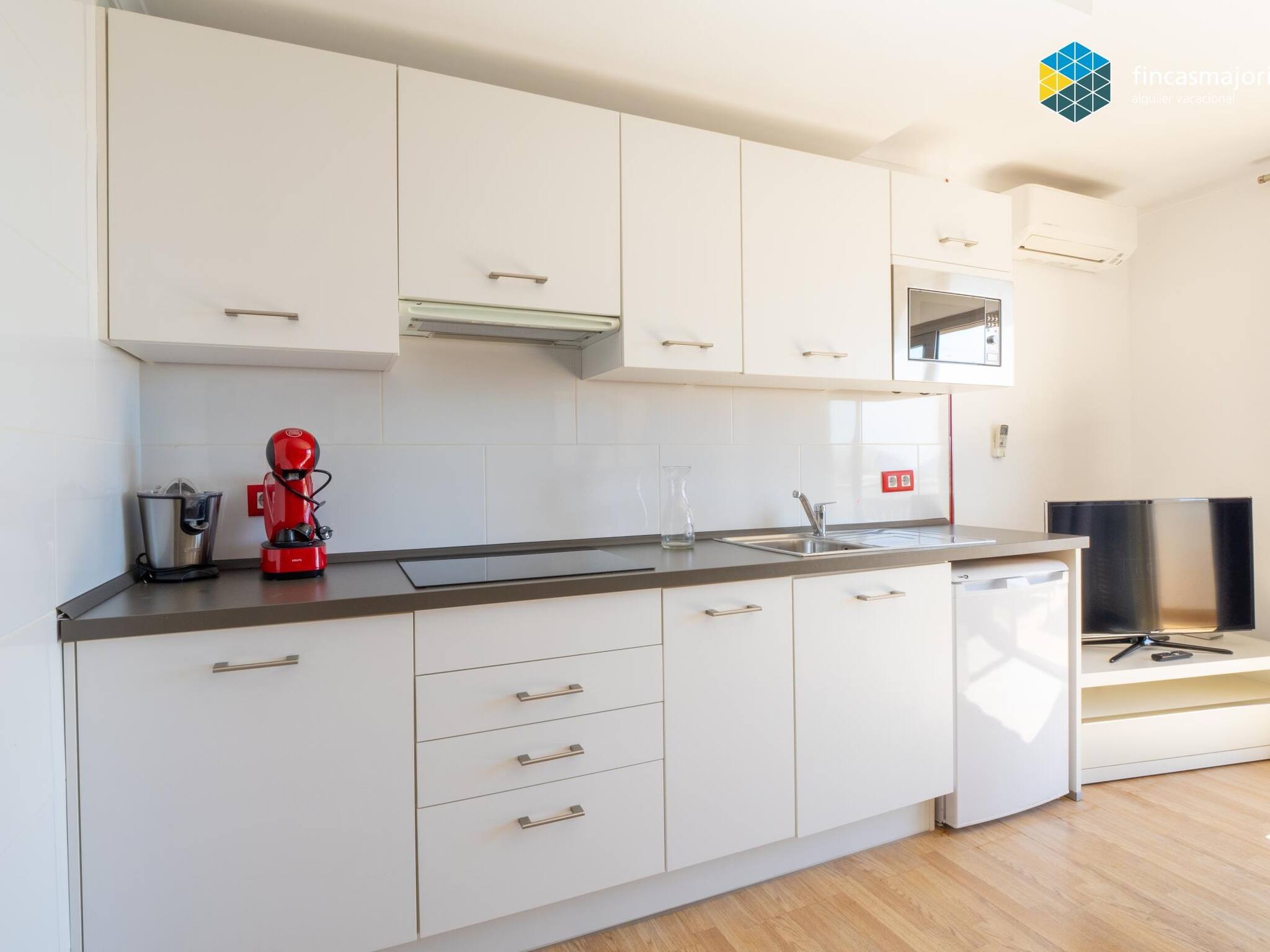 Diese Wohnung als 1 Schlafzimmer und ein Badezimmer. Es befindet sich im dritte Stock und ist nur über Treppe erreichbar. Geschmackvoll eingerichtet und mit allen modernen Annehmlichkeiten ausgestattet. Klimaanlage und Heizung im Wohnzimmer für Ihren Komfort. Kinderbett und Hochstuhl vorhanden. S'Illot ist eine beliebte Gegend für Einheimische und Touristen.