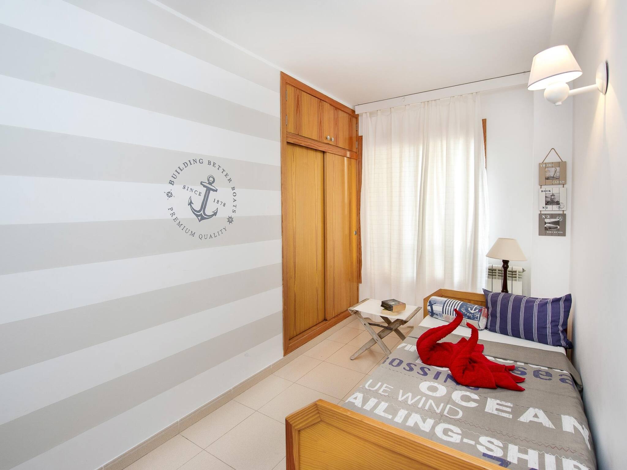 Unsurpassable location, very quiet. The terrace, the living room and the main bedroom are over the pedestrian walkway in the harbour and the other two rooms over a quiet street.