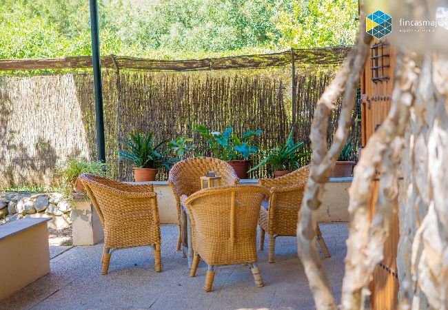 Can Moreu is a beautiful rustic property located in a privileged environment, at the entrance of the beautiful town of Caimari. The plot measures 15,000m2, and is full of almond trees and other fruit trees, such as fig trees. Large porches with outdoor furniture, where you can enjoy the fantastic views of the countryside and the mountains. Barbecue and outdoor oven, ideal for cooking pizzas and bread.