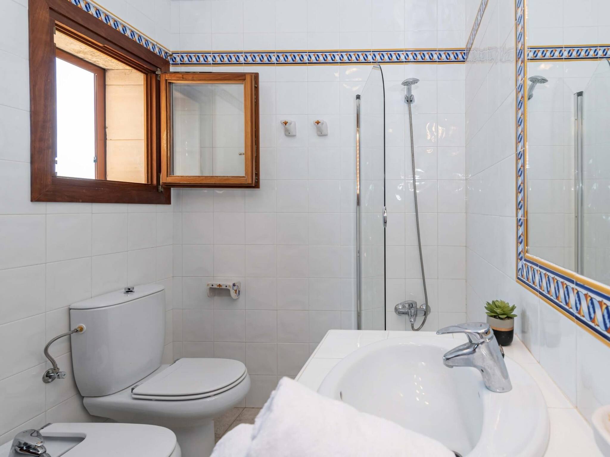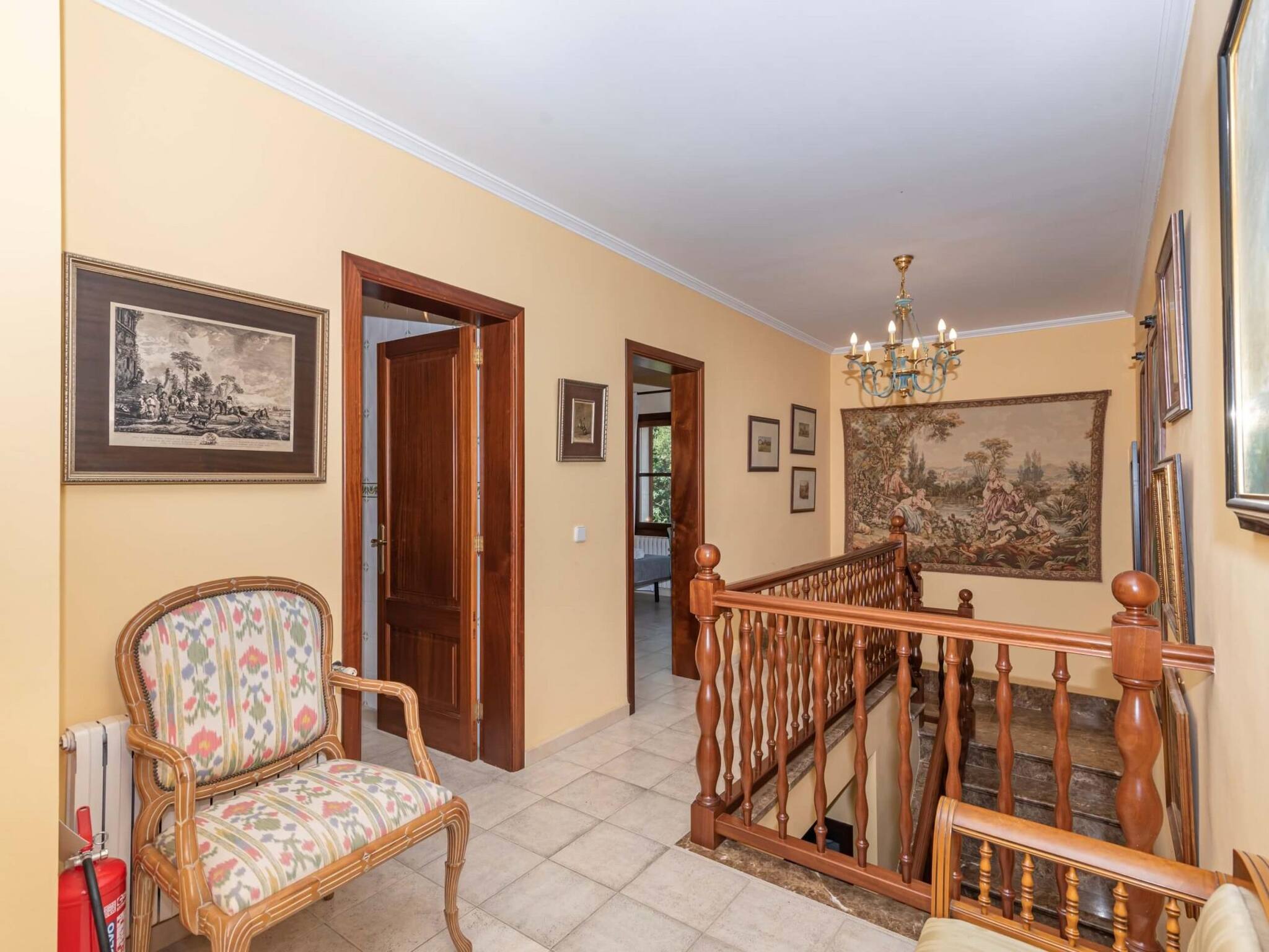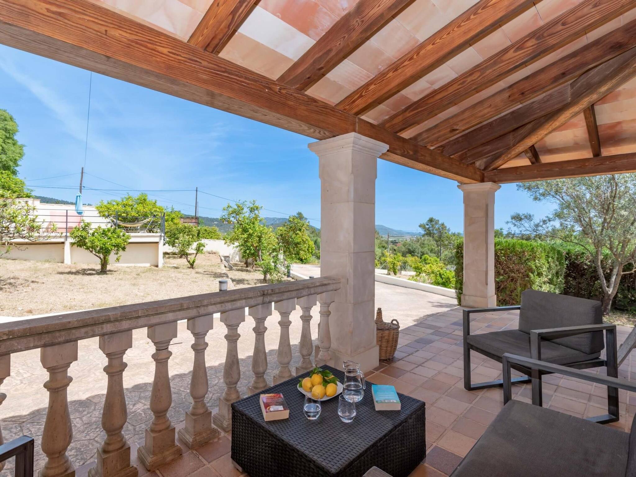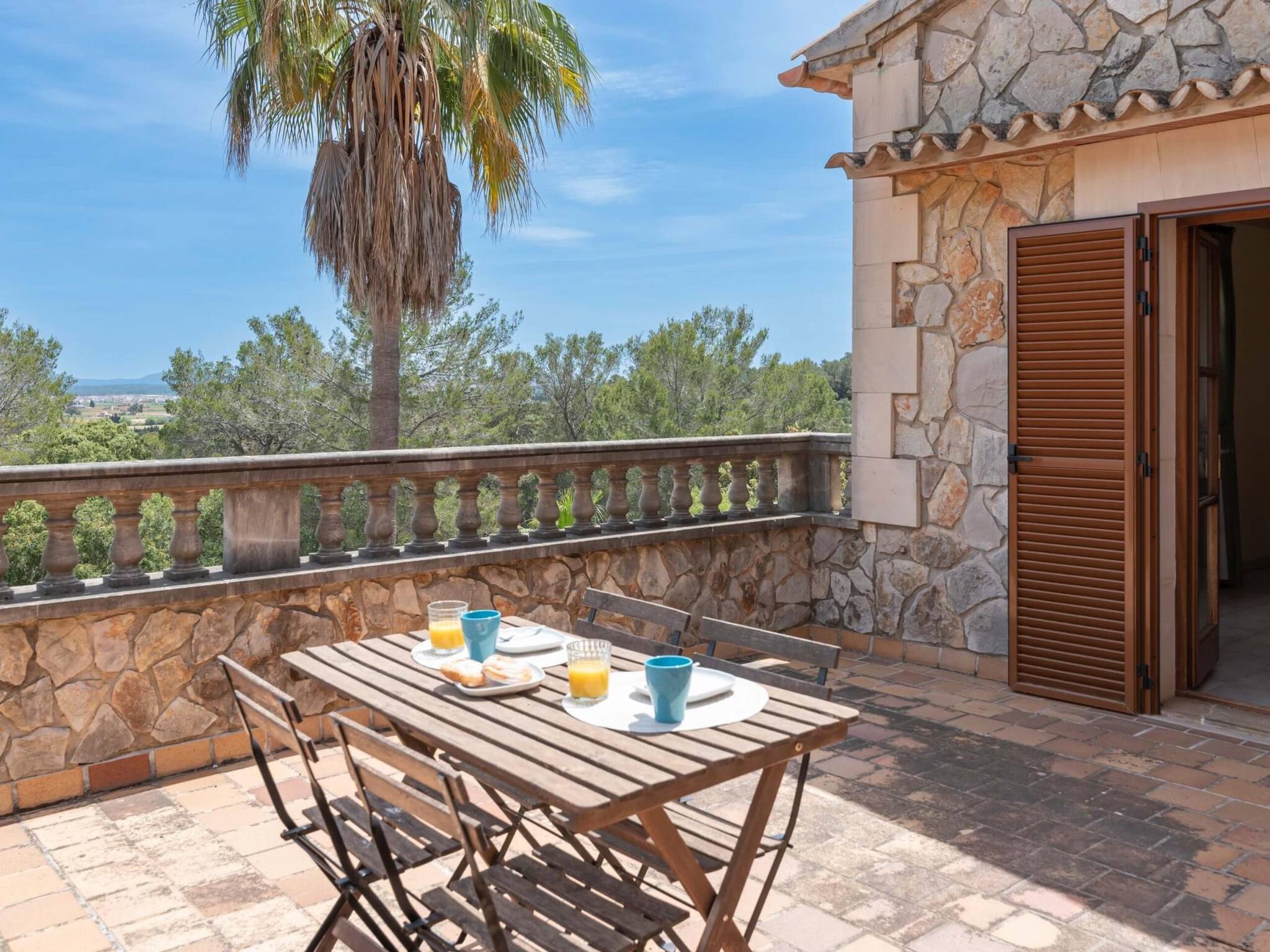 Inside, there is air conditioning and central heating in all rooms of the house, there are also 2 fireplaces, one in the main living room and another in the kitchen. There are a total of 4 beautiful double rooms and 3 full bathrooms. The rooms are distributed as follows: 1 bedroom and 1 bathroom on the ground floor. 3 bedrooms and 2 bathrooms on the upper floor. The master bedroom has a private terrace, with wonderful, unobstructed views of the Mallorcan countryside.