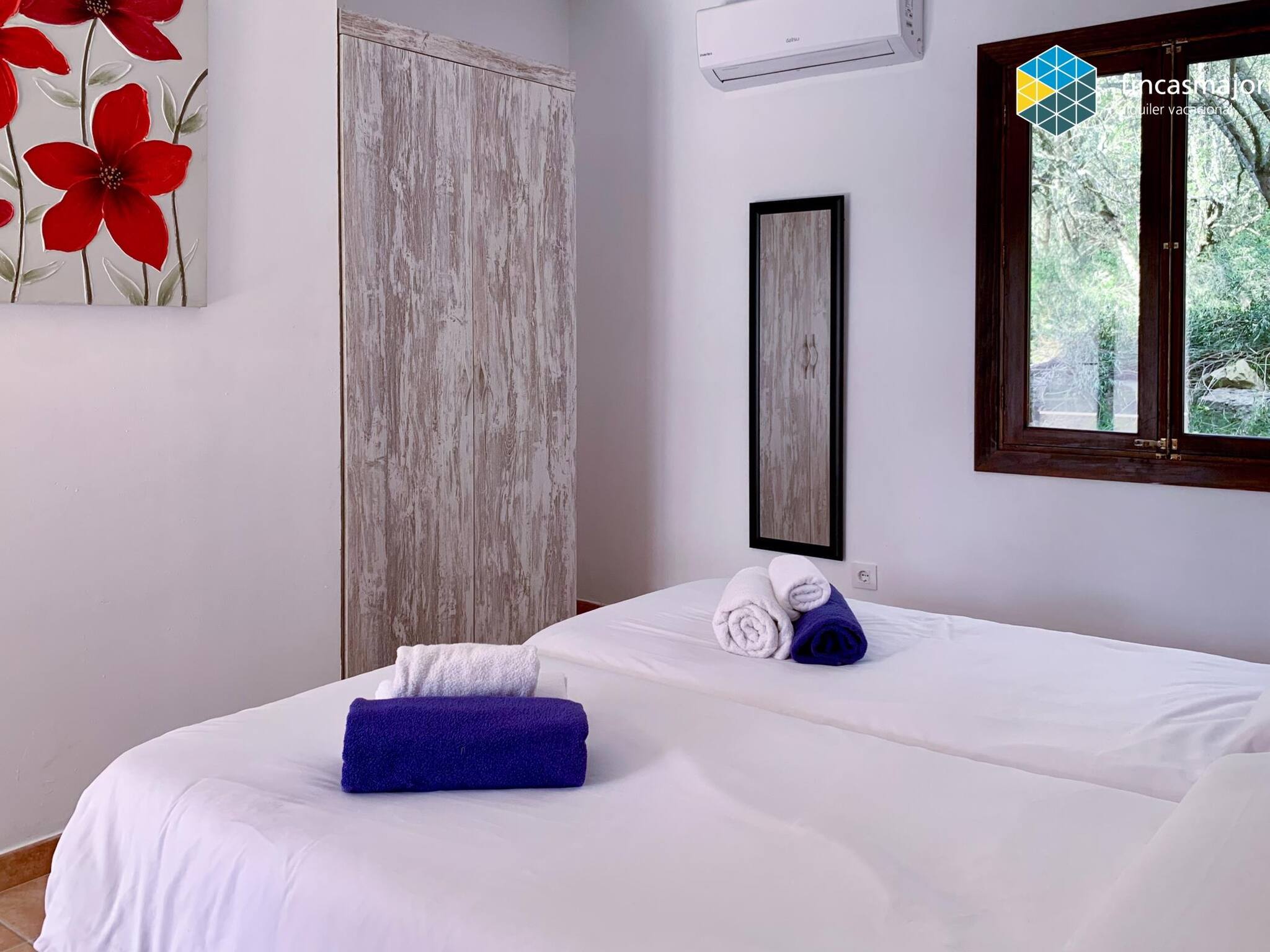 The house is 100% solar-powered. To maintain this management and ensure comfort, timers have been installed on the air conditioning units. These units automatically turn off after 3 hours of use. If you wish, you can continue using them. To do so, press the button on the wall (clearly marked with a sign that says "A/C"). Once pressed, you can turn the units back on using your remote control normally.