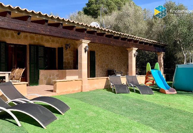 Cas Rellotger (The Clockmaker's House) is a beautiful newly renovated country house located on the outskirts of Llucmajor. The house is ideal for families, as it features an outdoor children's play area and a swimming pool. Equipped with all amenities, the house offers air conditioning (hot and cold) in all rooms. There are 2 double bedrooms and 2 bathrooms, both en suite. This house is perfect for families with small children. A cot and highchair are available at no extra cost. It is a comfortable house with a spacious outdoor area. Outside, there are some facilities for children, such as a playhouse and a slide. The entire property is fenced.