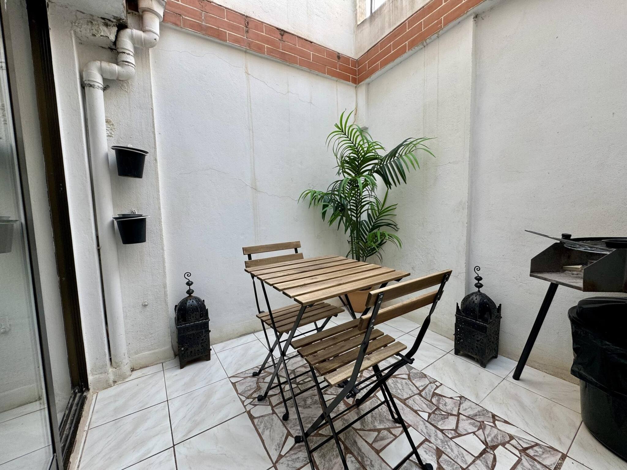 The sunny patio is completed with comfortable outdoor furniture and sun loungers, it is perfect for relaxing after a day in the city. The shallow pool is ideal for sitting and relaxing on a hot day. Just a few minutes' walk away, you will find yourself in the centre of Santa Catalina, a very lively and popular area, full of restaurants and bars. The heart of Palma and its shopping district are also a short distance away.