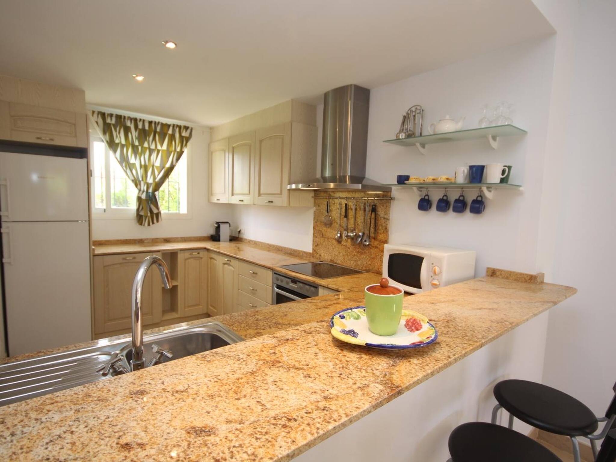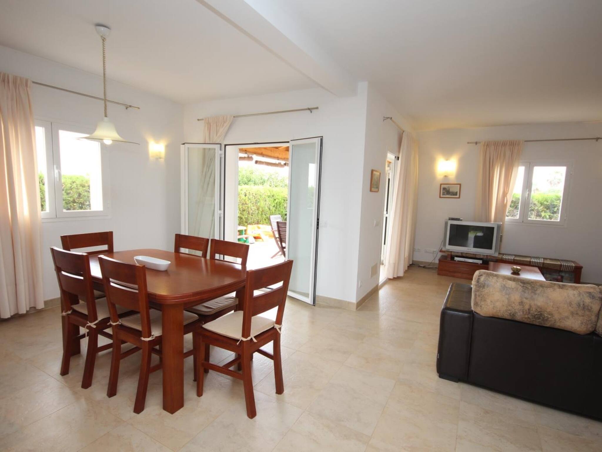 Outside it has a large porch and a beautiful and well-maintained garden that enjoys privacy. The house is located in a purely residential area, without hustle and bustle. In the area there are grocery stores, restaurants, etc. A few minutes away is the Club Nautico and next to it, a wonderful beach with white sand and turquoise waters.