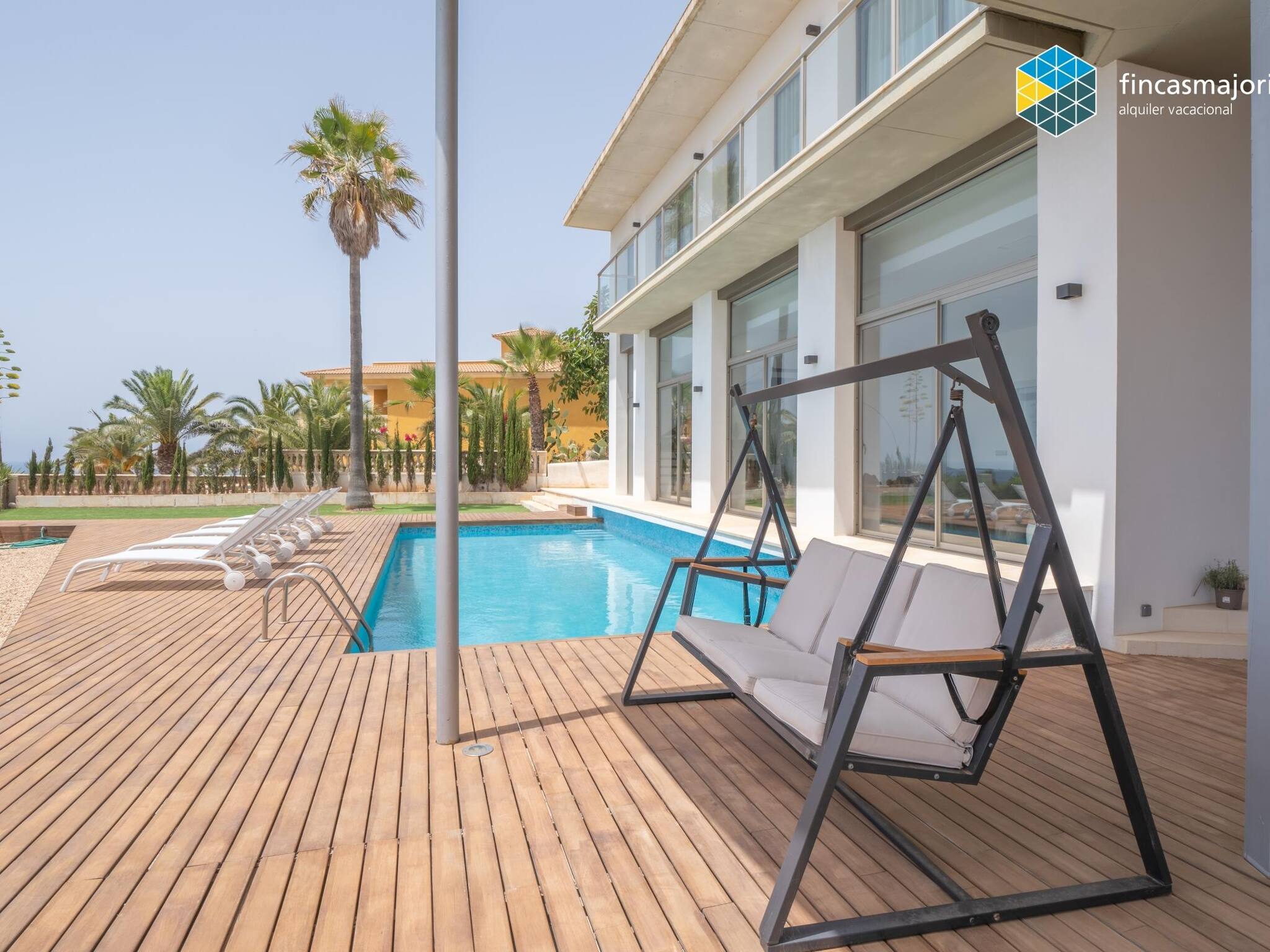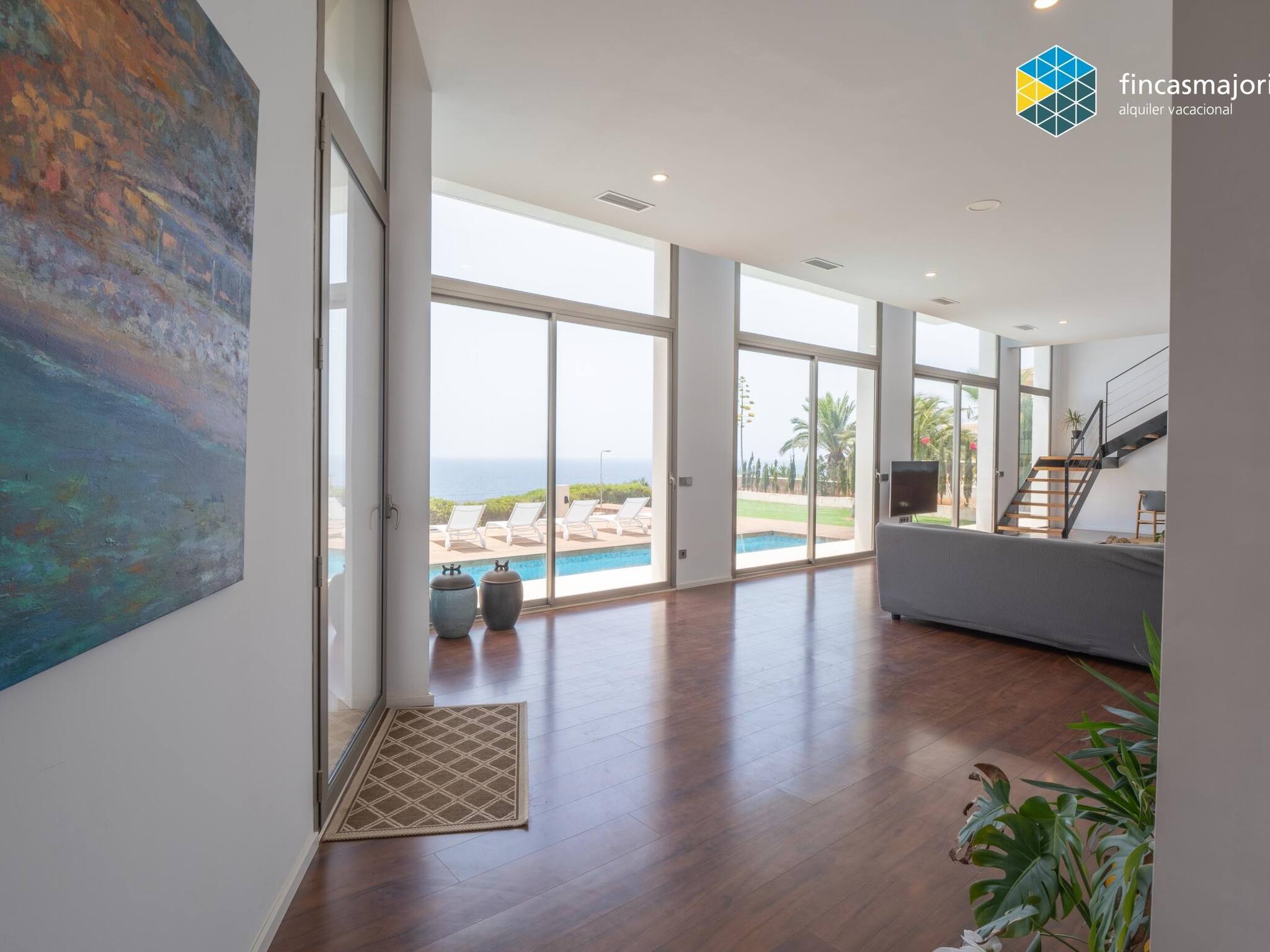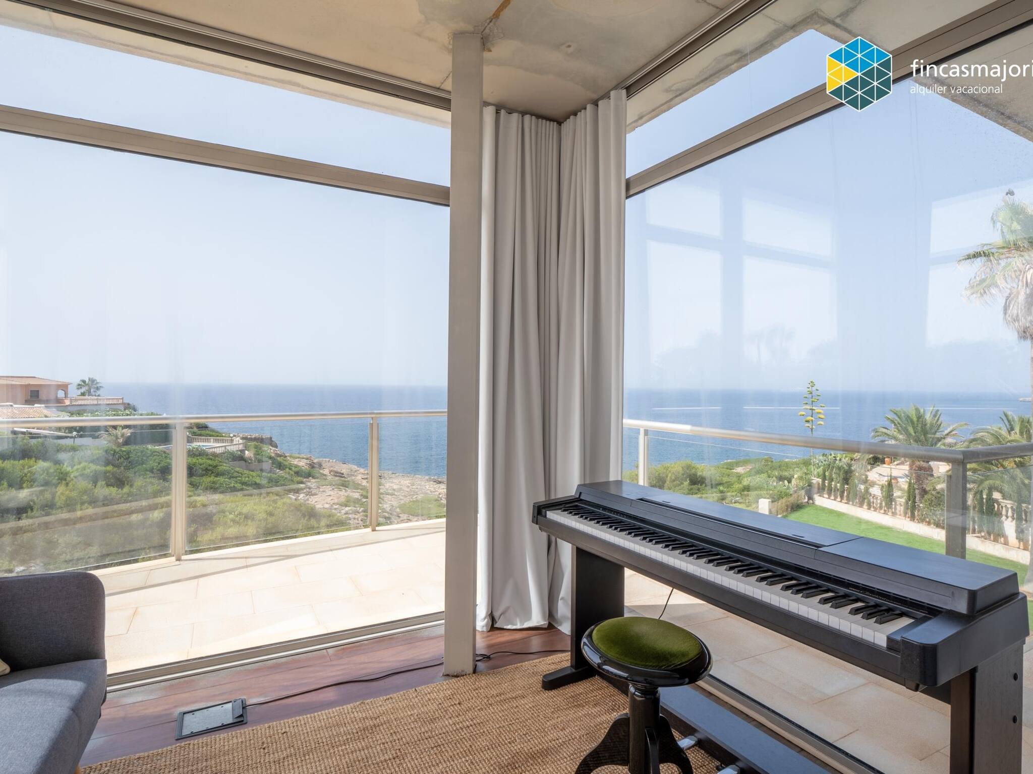 This fantastic villa has 4 double bedrooms, all with en suite bathrooms. All bedrooms have sea views, as well as blackout curtains that guarantee the most absolute privacy. The master bedroom has its own private living room, completed with a piano and has large windows that fill it with light and allow you to enjoy the relaxing views. We have a baby cot, high chair and baby hammock for the confort of our youngest guests.
