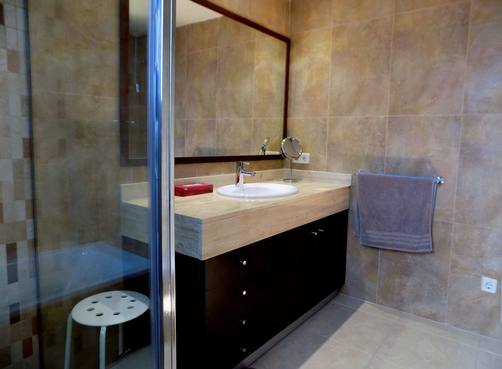 In the hotplate of glass ceramics independent kitchen, refrigerator, microwave, oven, dishes/cutlery, kitchen utensils and coffee machine are provided.